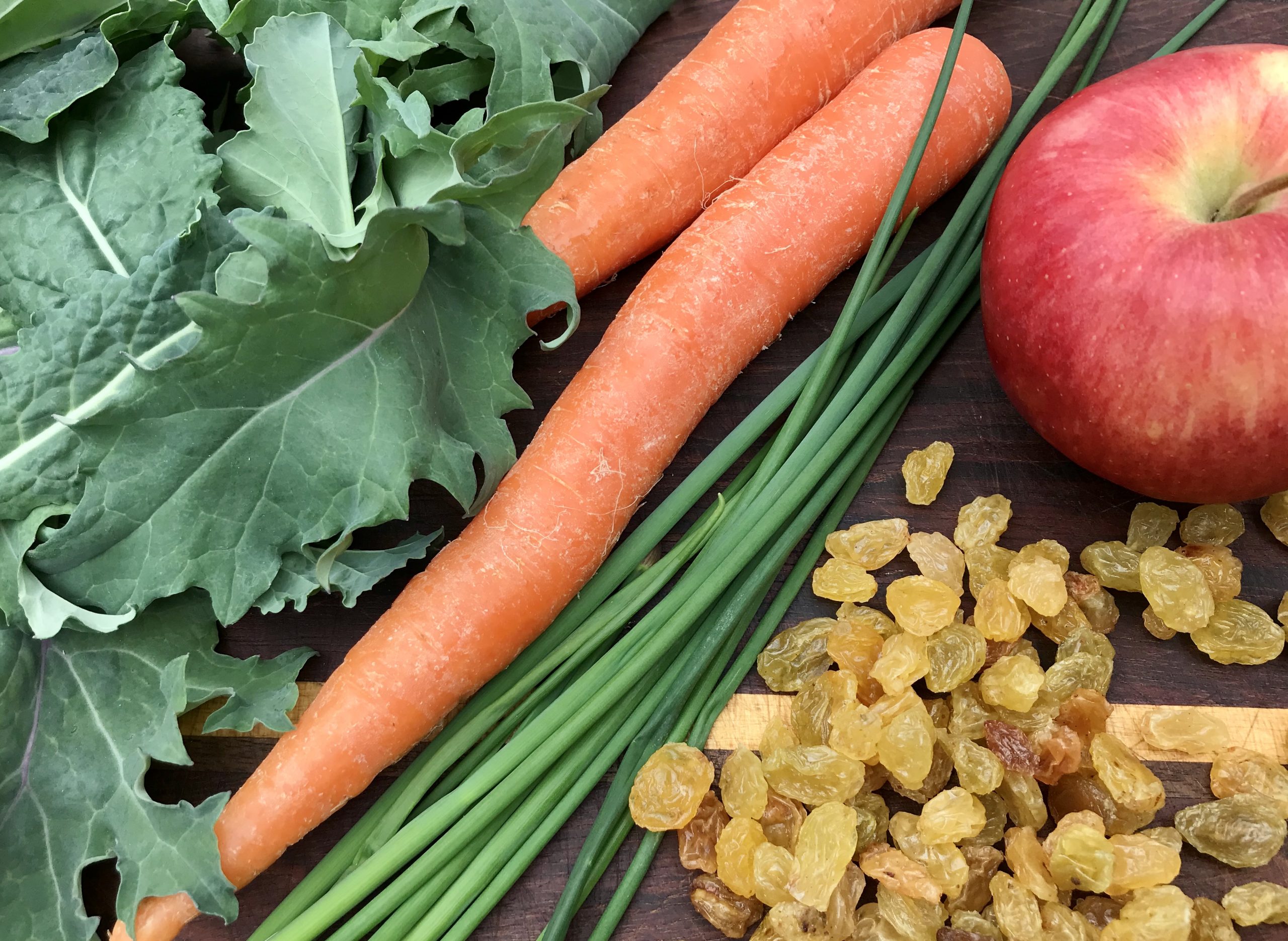 This simple Kale Slaw with Apples, Carrots and Raisins is delicious, colourful, and healthy. It is also quick and easy to make. With only a few ingredients and about 15-20 minutes, this fresh, light, salad or slaw is ready to eat. It is a beautiful combination of flavours.